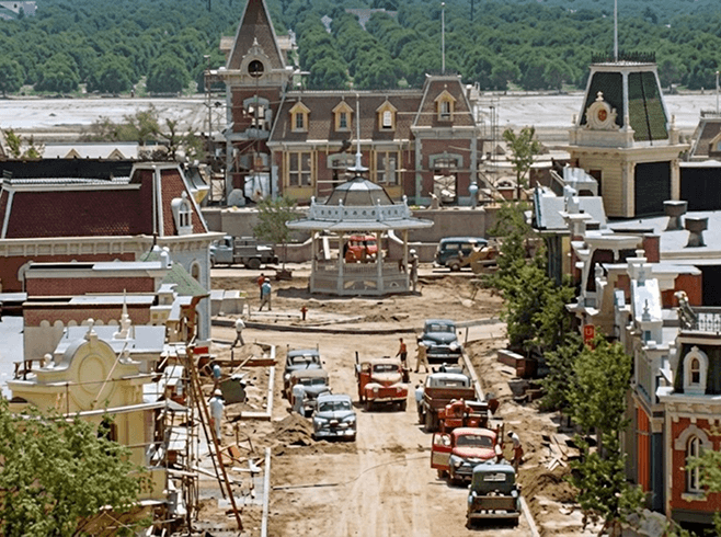 To prevent that immediate magnetism from shortening the discovery of Main Street, U.S.A., the bandstand was added at the last minute and deliberately placed along the central axis to hold visitors longer.
