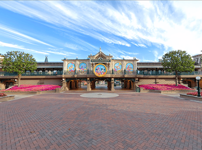 From the moment guests enter the park, because of the three required passages beneath the station, the visual pull toward the castle is much more direct than in other parks.