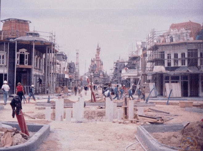 The Town Square bandstand is an old idea inherited from the creation of Disneyland in California. There, it was ultimately removed before opening because it blocked the direct view of the castle.